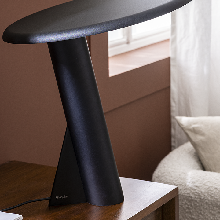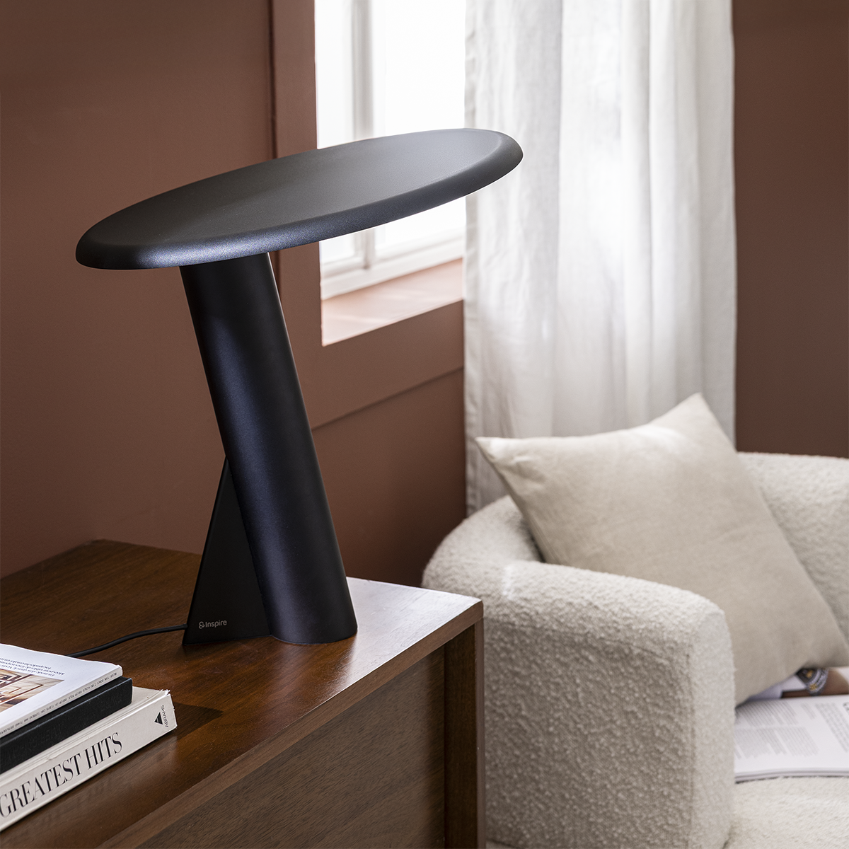 Pisano is designed to illuminate your desk or fill a space on a sideboard in your living room. Its weighted aluminum body, angled like its head, also inclined, gives an impression of fragile, even disconcerting, balance. It’s designed to provide powerful yet diffused lighting to prevent glare, thanks to a very wide diffuser – a unique feature for this type of lamp.